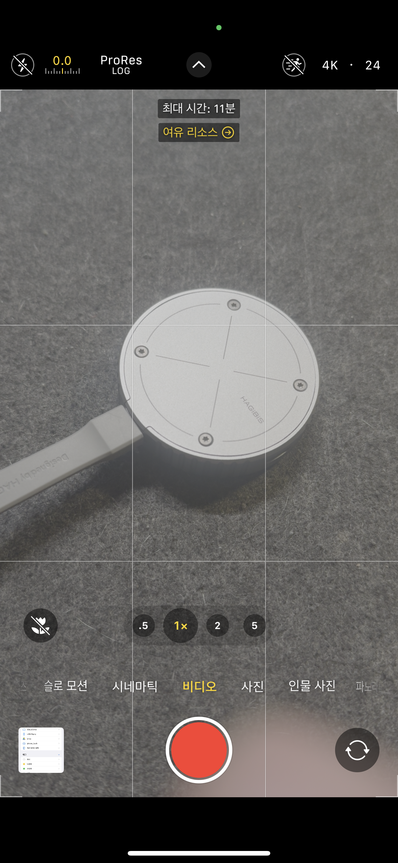 외장 ssd 달기전 log 촬영이 11분 이었는데